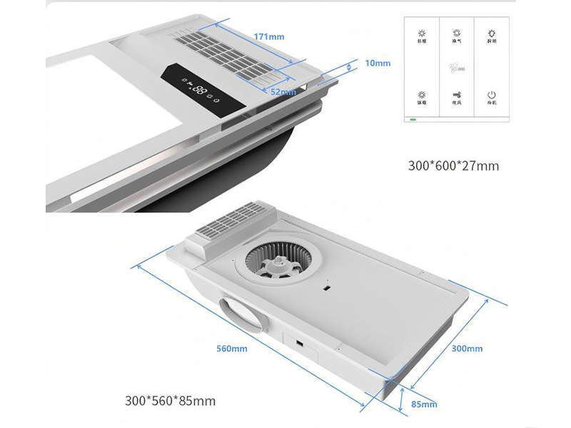 Ventilation, blowing, two speed heating, lighting, timeout protection, delay protection, temperature function display screen |